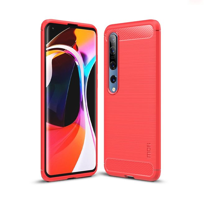 Mofi - Xiaomi Mi 10 / Mi 10 Pro Hülle - TPU Softcase - Carbon Fiber Series - rot