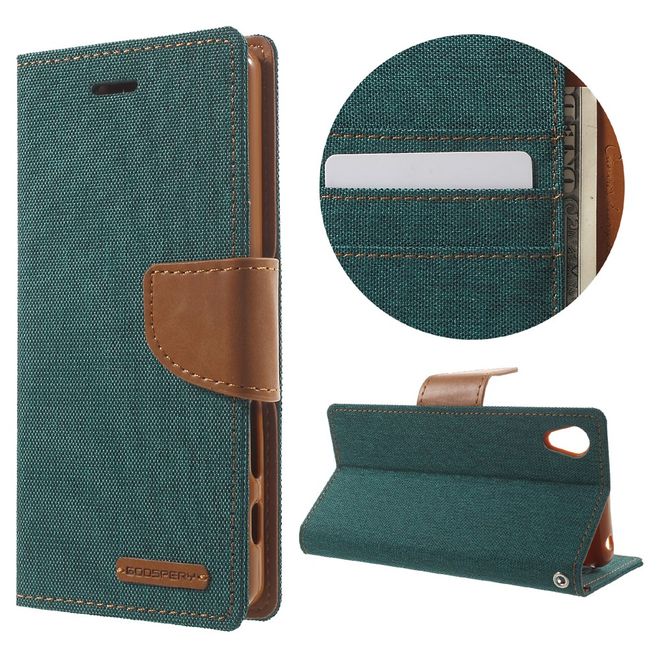 Goospery - Hülle für Sony Xperia X - Bookcover- Canvas Diary Series - grün/camel