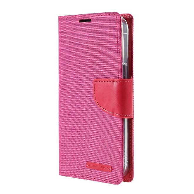 Goospery - iPhone 13 Pro Max Hülle - Leder/Stoff Case - Canvas Diary Series - pink