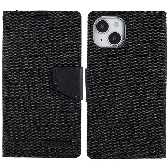 Goospery - iPhone 13 Pro Max Hülle - Leder/Stoff Case - Canvas Diary Series - schwarz