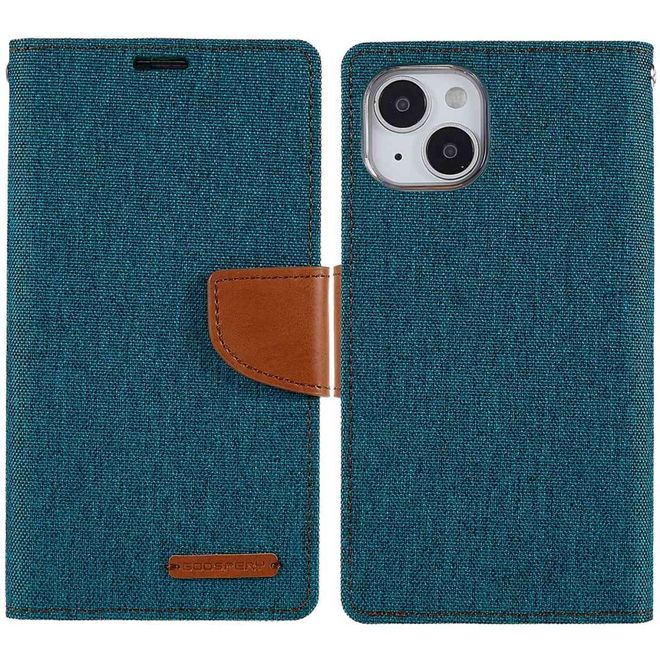 Goospery - iPhone 14 Plus Hülle - Bookcover - Canvas Diary Series - dunkelblau