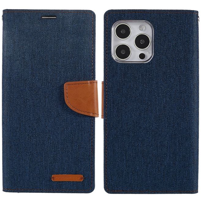 Goospery - iPhone 14 Pro Hülle - Bookcover - Canvas Diary Series - dunkelblau