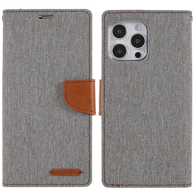 Goospery - iPhone 14 Pro Max Hülle - Bookcover - Canvas Diary Series - grau