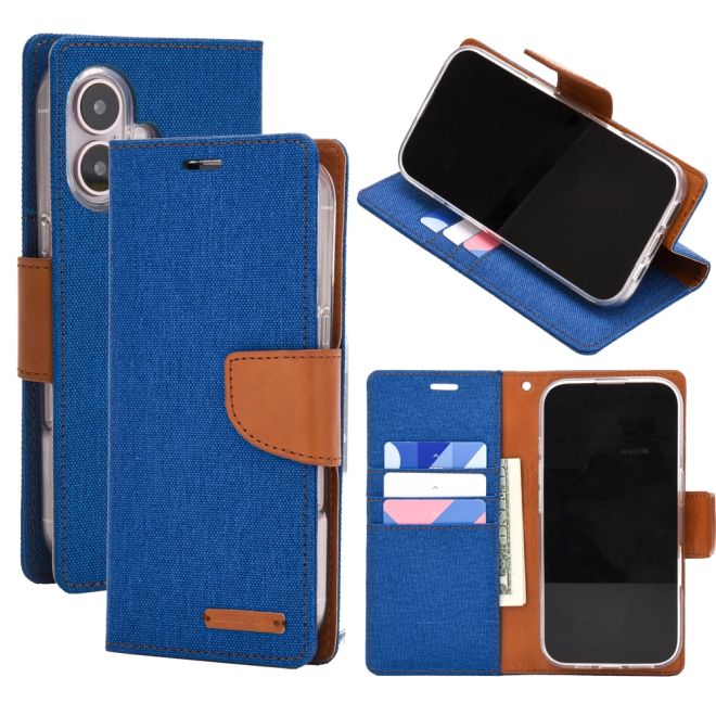 Goospery - iPhone 16 Hülle - Bookcover - Canvas Diary Series - blau/camel
