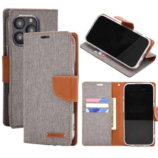 Goospery - iPhone 16 Pro Hülle - Bookcover - Canvas Diary Series - grau/camel