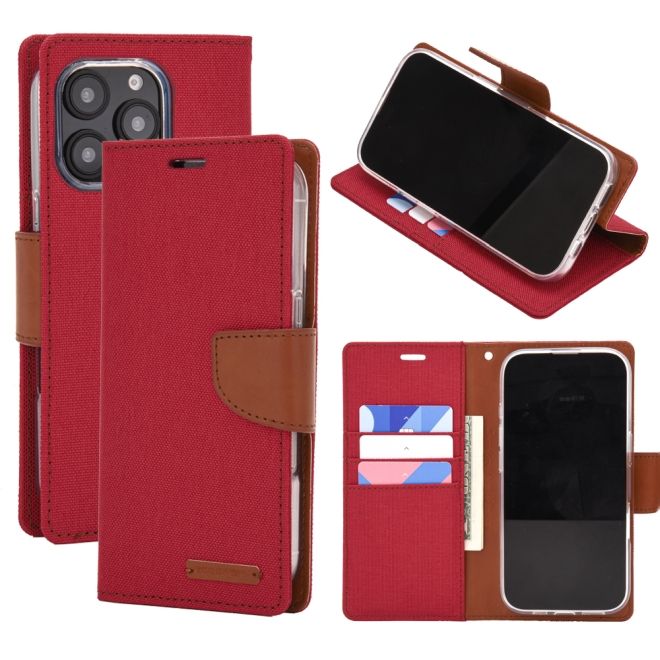 Goospery - iPhone 16 Pro Max Hülle - Bookcover - Canvas Diary Series - rot/camel