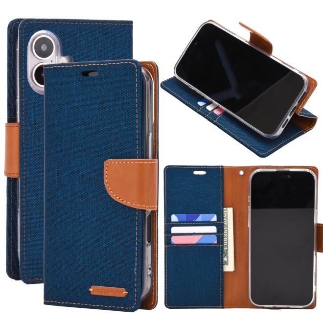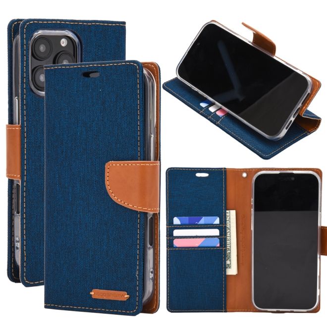 Goospery - iPhone 16 Pro Hülle - Bookcover - Canvas Diary Series - blau/camel