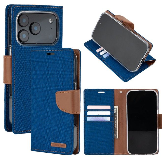 Goospery - iPhone 17 Pro Hülle - Bookcover - Canvas Diary Series - blau/camel