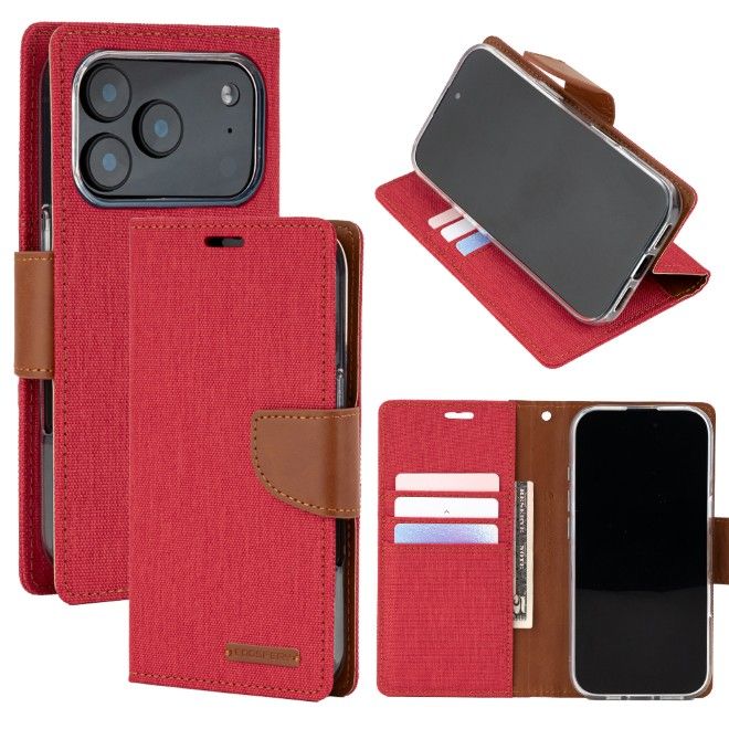 Goospery - iPhone 17 Pro Hülle - Bookcover - Canvas Diary Series - rot/camel