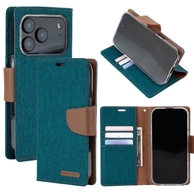 Goospery - iPhone 17 Pro Hülle - Bookcover - Canvas Diary Series - grün/camel