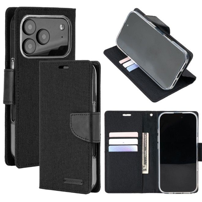 Goospery - iPhone 17 Pro Hülle - Bookcover - Canvas Diary Series - schwarz