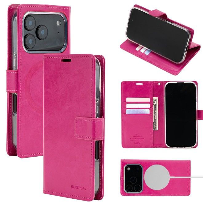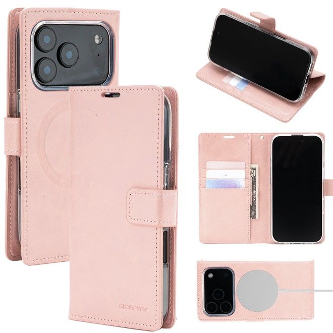 Goospery - iPhone 17 Pro Hülle - Leder Bookcover - Bluemoon Diary MagSafe Series - rosa