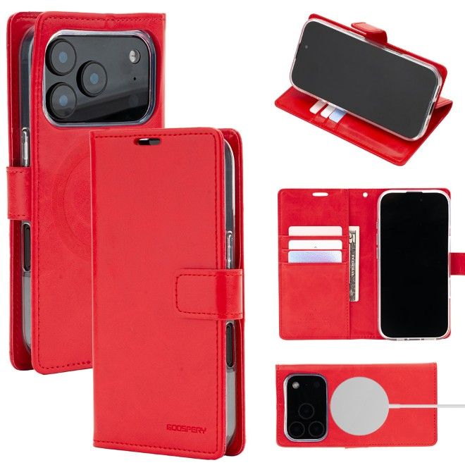 Goospery - iPhone 17 Pro Hülle - Leder Bookcover - Bluemoon Diary MagSafe Series - rot