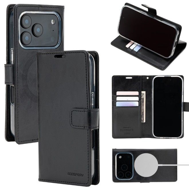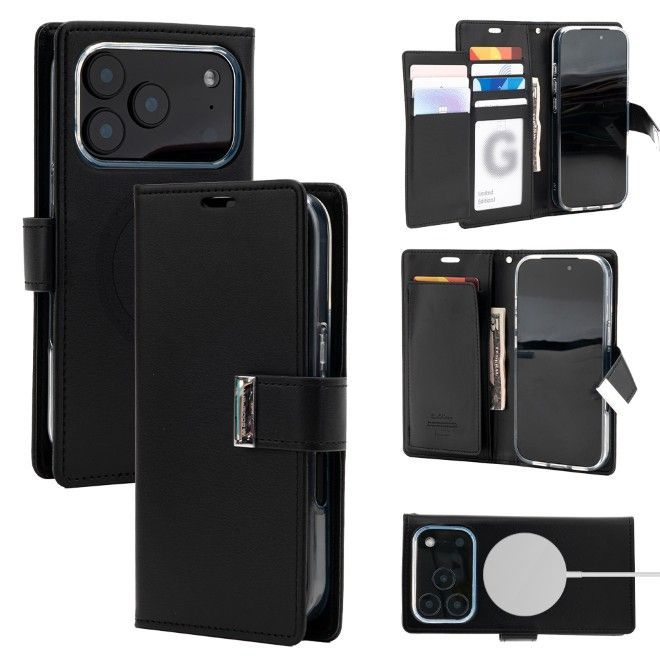 Goospery - iPhone 17 Pro Hülle - Leder Bookcover - Rich Diary MagSafe Series - schwarz
