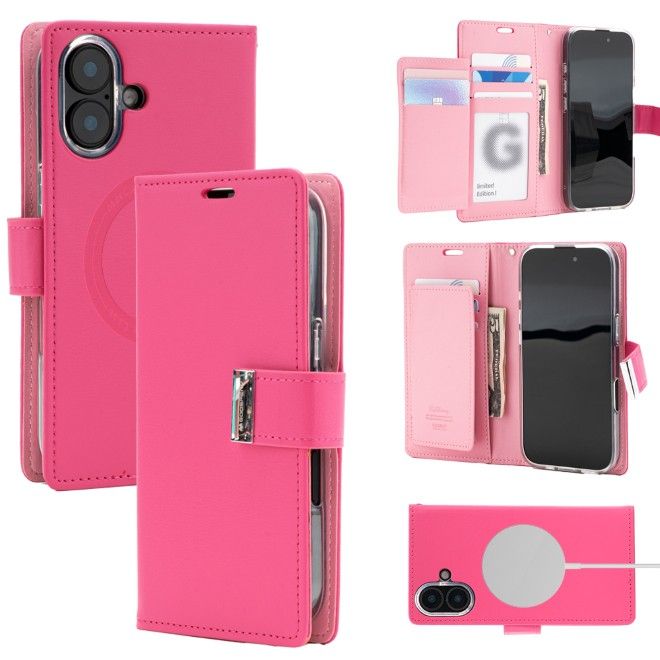 Goospery - iPhone 17 Hülle - Leder Bookcover - Rich Diary MagSafe Series - rosa/pink