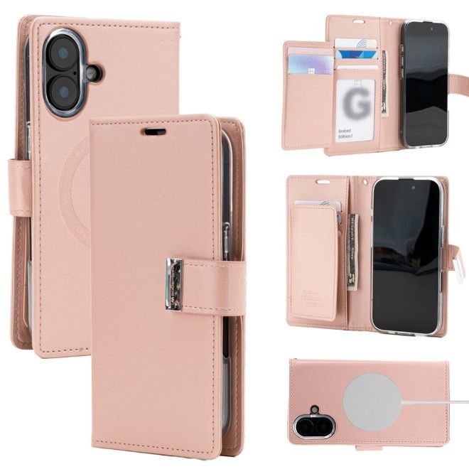 Goospery - iPhone 17 Hülle - Leder Bookcover - Rich Diary MagSafe Series - rosegold