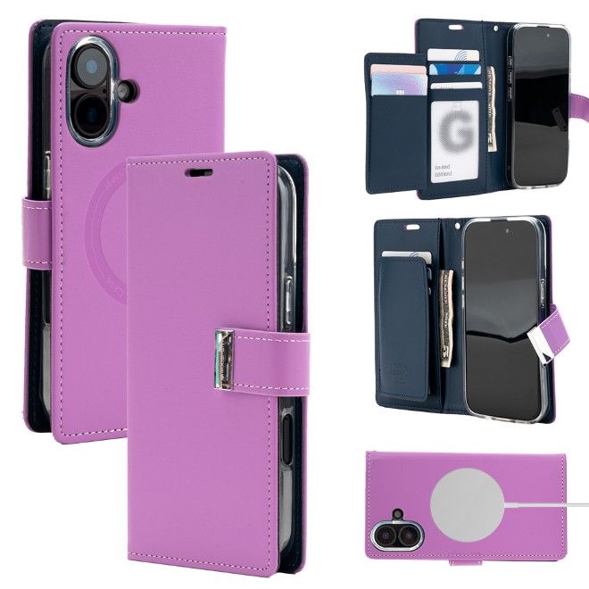 Goospery - iPhone 17 Hülle - Leder Bookcover - Rich Diary MagSafe Series - purpur/navy