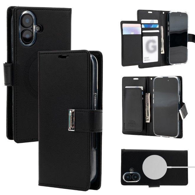 Goospery - iPhone 17 Hülle - Leder Bookcover - Rich Diary MagSafe Series - schwarz