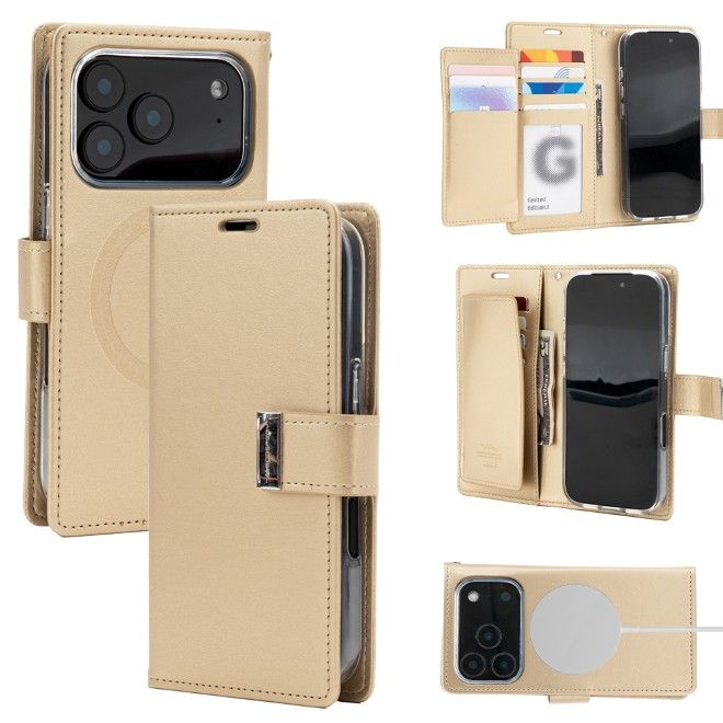 Goospery - iPhone 17 Pro Hülle - Leder Bookcover - Rich Diary MagSafe Series - gold