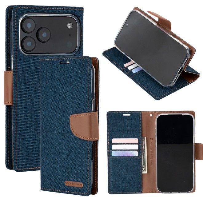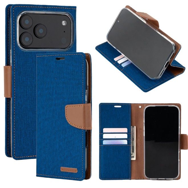 Goospery - iPhone 17 Pro Max Hülle - Bookcover - Canvas Diary Series - blau/camel
