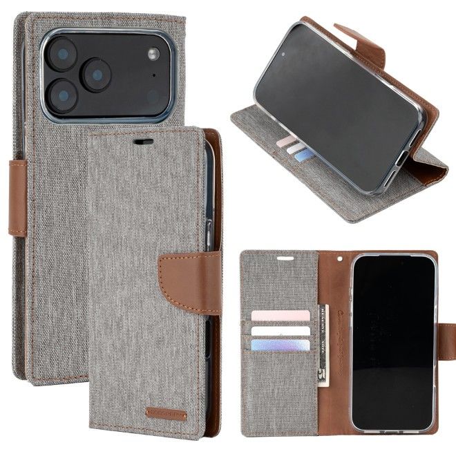 Goospery - iPhone 17 Pro Max Hülle - Bookcover - Canvas Diary Series - grau/camel