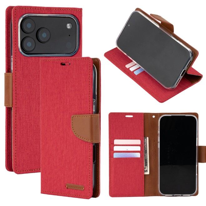 Goospery - iPhone 17 Pro Max Hülle - Bookcover - Canvas Diary Series - rot/camel
