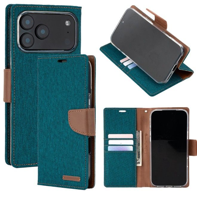 Goospery - iPhone 17 Pro Max Hülle - Bookcover - Canvas Diary Series - grün/camel