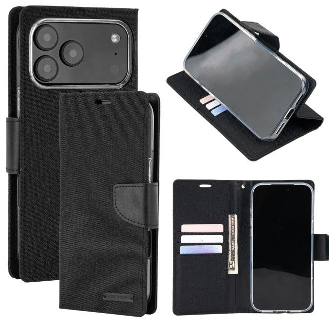 Goospery - iPhone 17 Pro Max Hülle - Bookcover - Canvas Diary Series - schwarz