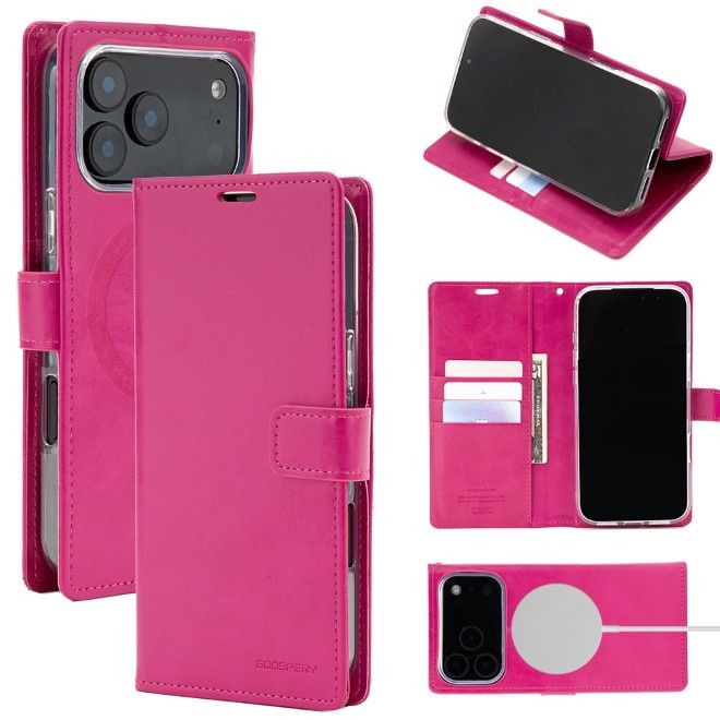 Goospery - iPhone 17 Pro Max Hülle - Leder Bookcover - Bluemoon Diary MagSafe Series - rosa