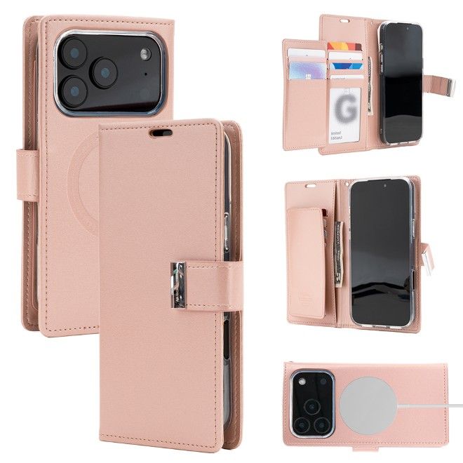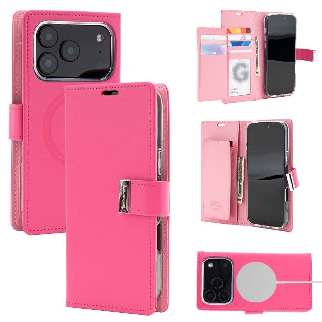 Goospery - iPhone 17 Pro Max Hülle - Leder Bookcover - Rich Diary MagSafe Series - rosa/pink