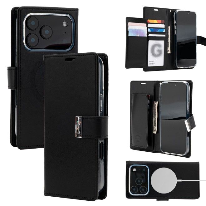 Goospery - iPhone 17 Pro Max Hülle - Leder Bookcover - Rich Diary MagSafe Series - schwarz