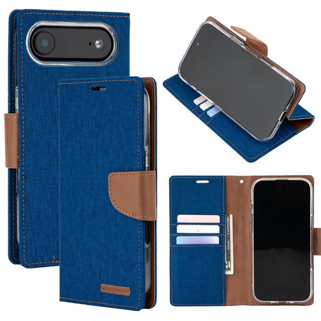 Goospery - iPhone Air Hülle - Bookcover - Canvas Diary Series - blau/camel