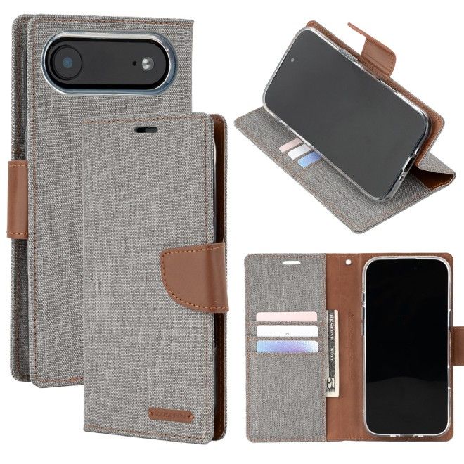Goospery - iPhone Air Hülle - Bookcover - Canvas Diary Series - grau/camel