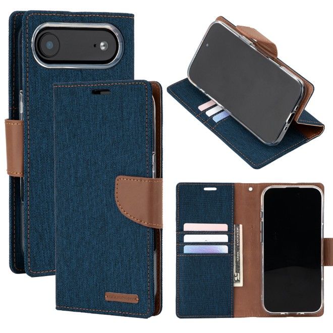 Goospery - iPhone Air Hülle - Bookcover - Canvas Diary Series - navy/camel