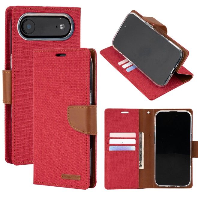 Goospery - iPhone Air Hülle - Bookcover - Canvas Diary Series - rot/camel