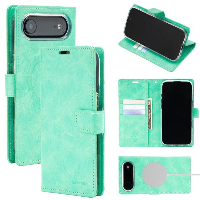 Goospery - iPhone Air Hülle - Leder Bookcover - Bluemoon Diary MagSafe Series - mint
