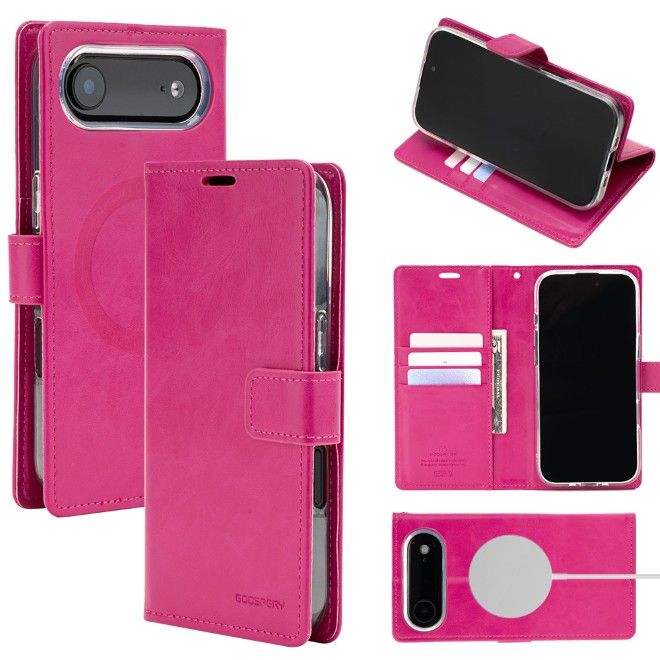 Goospery - iPhone Air Hülle - Leder Bookcover - Bluemoon Diary MagSafe Series - rosa