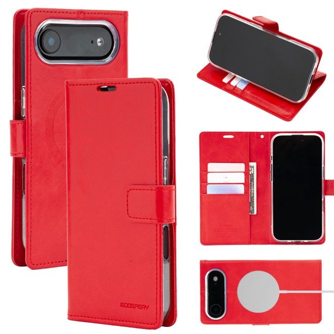 Goospery - iPhone Air Hülle - Leder Bookcover - Bluemoon Diary MagSafe Series - rot