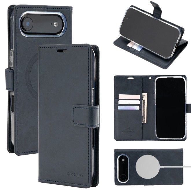 Goospery - iPhone Air Hülle - Leder Bookcover - Bluemoon Diary MagSafe Series - navy