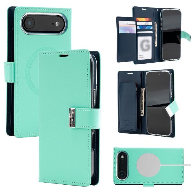 Goospery - iPhone Air Hülle - Leder Bookcover - Rich Diary MagSafe Series - mint/navy