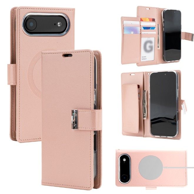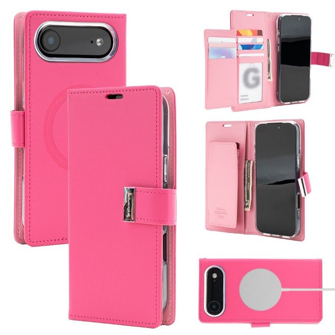 Goospery - iPhone Air Hülle - Leder Bookcover - Rich Diary MagSafe Series - rosa/pink