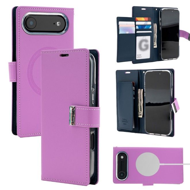 Goospery - iPhone Air Hülle - Leder Bookcover - Rich Diary MagSafe Series - purpur/navy