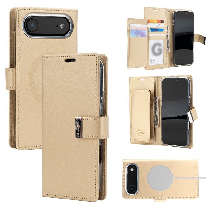 Goospery - iPhone Air Hülle - Leder Bookcover - Rich Diary MagSafe Series - gold