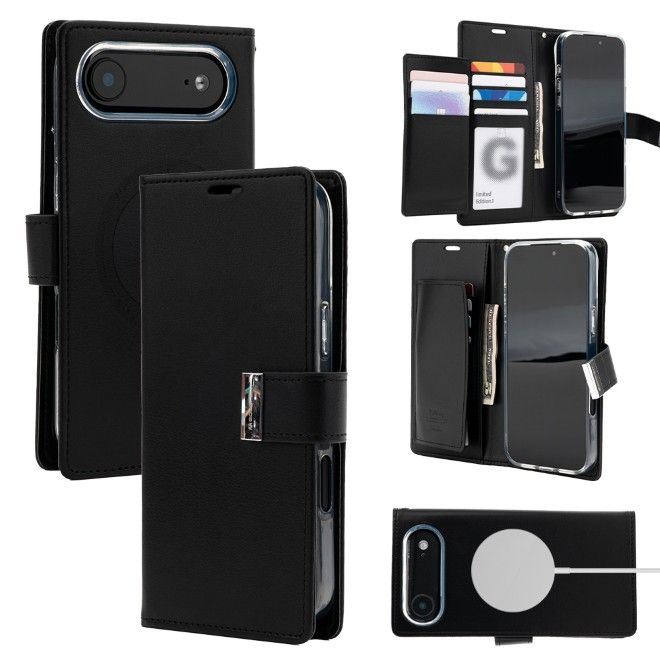 Goospery - iPhone Air Hülle - Leder Bookcover - Rich Diary MagSafe Series - schwarz