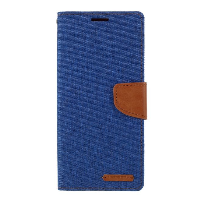 Goospery - Samsung Galaxy Note 20 Hülle - Leder/Stoff Case - Canvas Diary Series - blau/camel