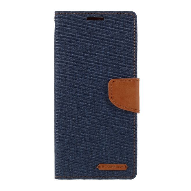 Goospery - Samsung Galaxy Note 20 Hülle - Leder/Stoff Case - Canvas Diary Series - navy/camel