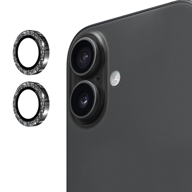Enkay - iPhone 17 Kamera Glas - Glitter Metall Ring - schwarz