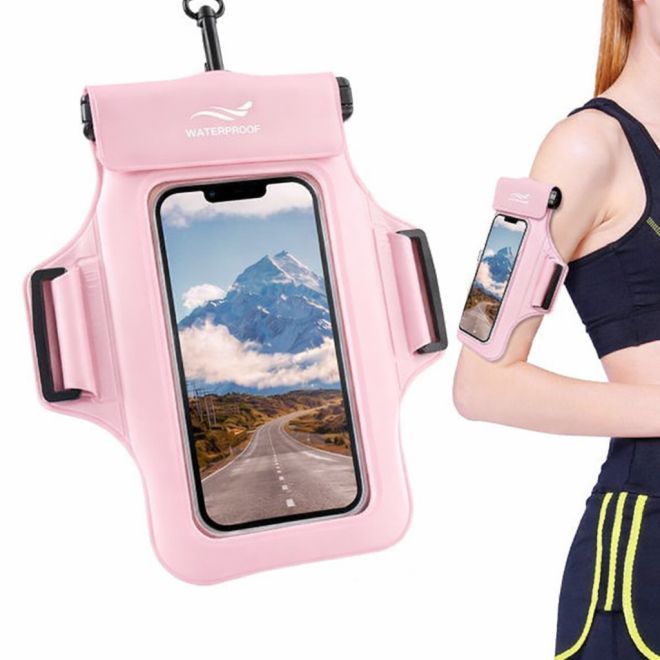 2-in-1 Universal Waterproof Shoulder Bag & Sports Armband for Smartphones up to 7" - Pink