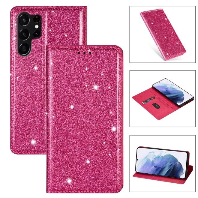 Samsung Galaxy S26 Ultra Hülle - Glitzerndes Leder Bookcover - Glitter Sequins Stand Series - rosa