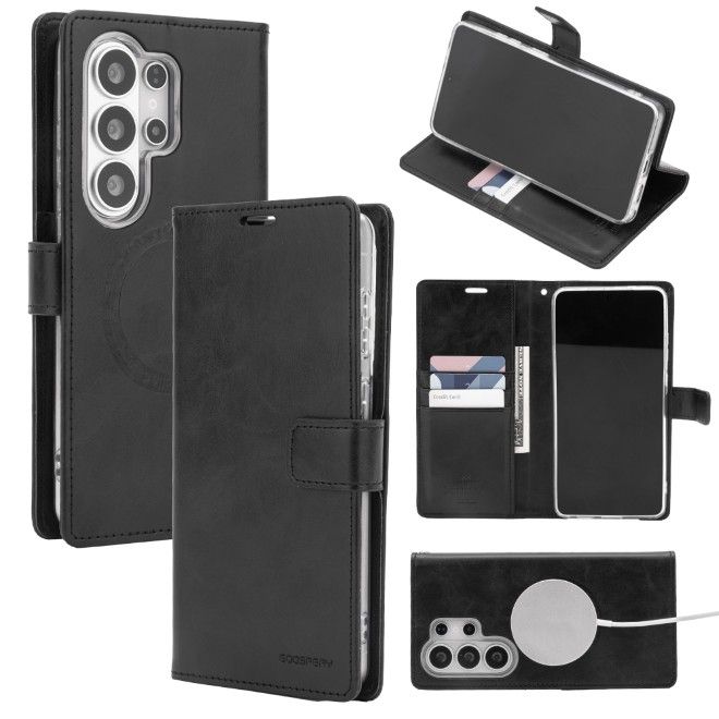 Goospery - Samsung Galaxy S26 Ultra Hülle - Leder Bookcover - Bluemoon Diary MagSafe Series - schwarz